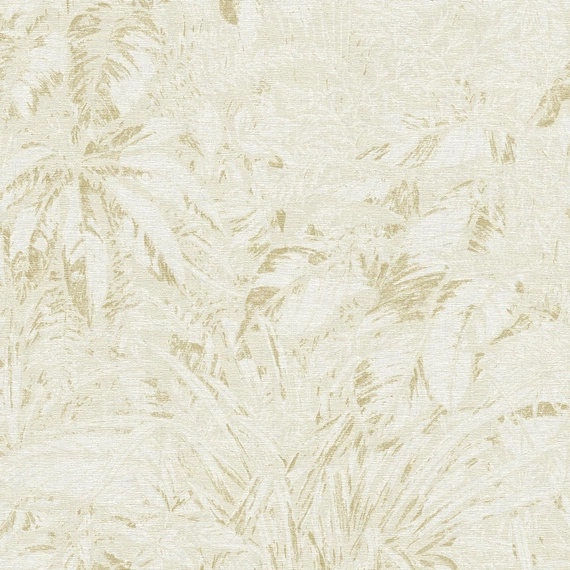 🌿 One wall may reveal tropical leaves with a hint of golden shine – like sunlight breaking through the trees.